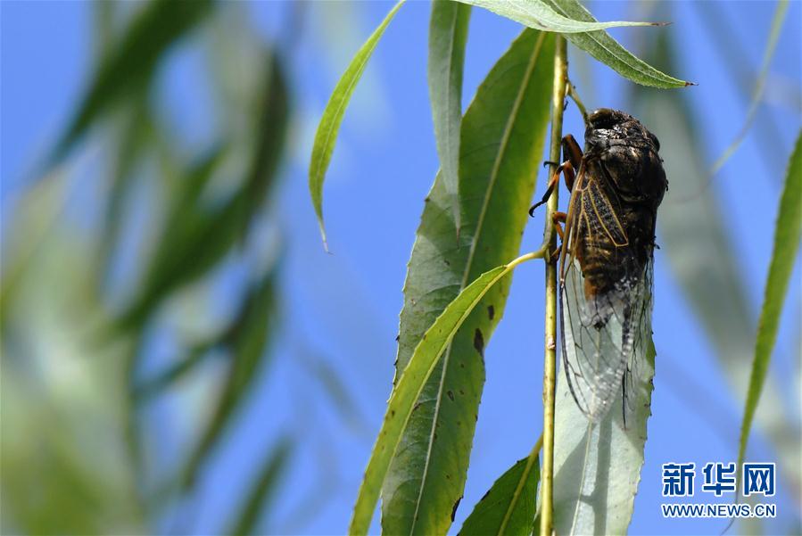 8月7日在福州西湖公园拍摄的树枝上的一只蝉。 当日是立秋节气,意味着夏尽秋来,金风渐至。 新华社记者 魏培全 摄