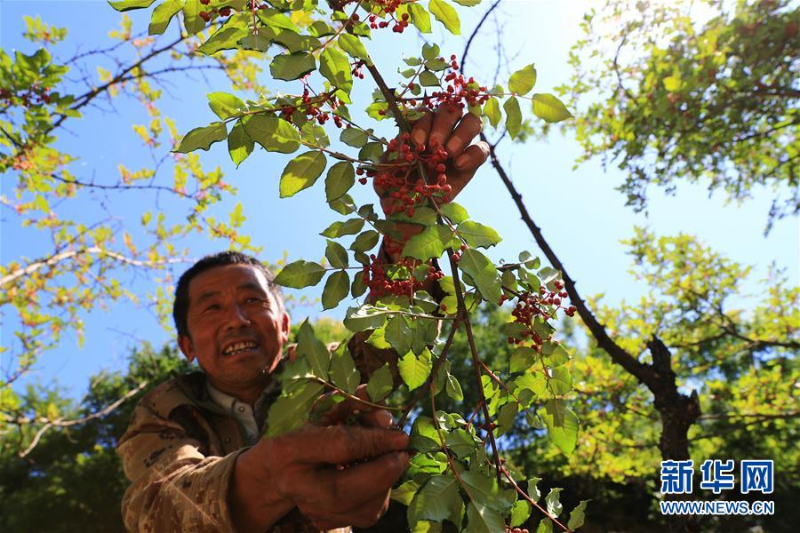7月17日,舟曲县立节镇拉沟村的村民在摘花椒。新华社记者 杜哲宇 摄