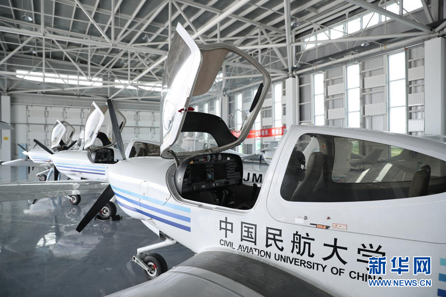 图为机库中待飞的单发DA40D飞机。新华网焦鹏摄