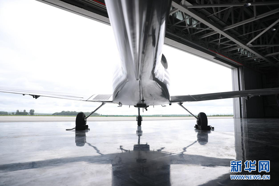 图为机库中待飞的单发DA40D飞机。新华网焦鹏摄