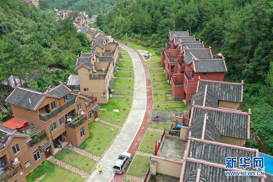 这是广西南丹县“千家瑶寨·万户瑶乡”里湖王尚易地扶贫搬迁安置点部分民居(8月5日摄,无人机照片)。新华社记者 周华 摄