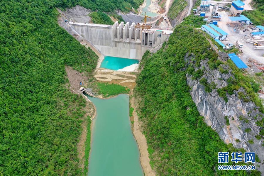 8月8日无人机拍摄的建设中的冉渡滩水库。 近日,由中铁五局等单位联合建设的贵州省务川仡佬族苗族自治县冉渡滩水库建设进入最后冲刺阶段。 据了解,冉渡滩水库建筑在洪渡河上,坝长181米,坝顶宽8米,坝高69米,库容水量5470万立方米。冉渡滩水库工程是务川县城的主要供水工程,总投资15.89亿元,建成后,每年可为务川县提供城镇用水9120万立方米,有力地保障了务川县饮水安全。 新华社记者刘续摄