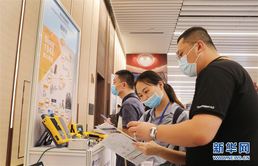 8月8日,一位参展商工作人员(右)向来宾介绍企业产品宣传册。 当日,第三届进博会技术装备展区展前供需对接会在国家会展中心(上海)举行。60余家参展商和100余家采购商在对接会上通过介绍和观看展品、互动演示和远程网络连线等方式交流洽谈。 新华社记者 方喆 摄