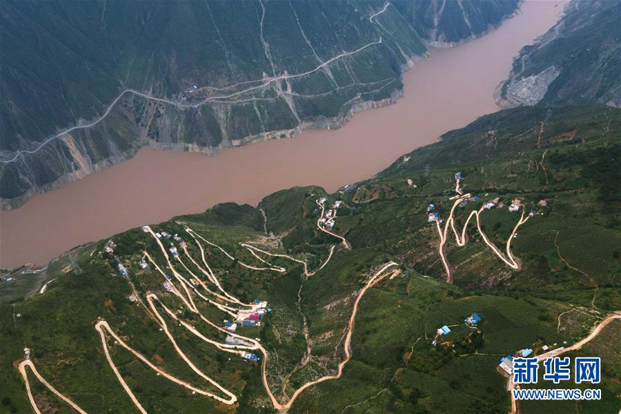 通往雷波县大坪子乡大坪子村的通村公路(8月7日摄,无人机照片)。 新华社记者 胥冰洁 摄