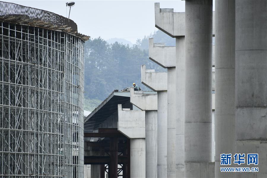 工人在兰海高速重遵扩容工程蒲场特大桥施工现场作业(8月9日摄)。 蒲场特大桥是兰海高速重遵扩容项目14标段控制性工程,是该标段体量最大、长度最长的一座桥,全长1.61公里,预计今年10月完工。重遵扩容项目起于重庆下坪,止于贵州遵义新蒲新区,预计2022年底完工通车。 新华社发(罗星汉摄)