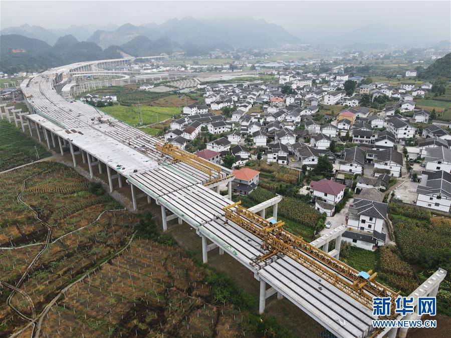 建设中的兰海高速重遵扩容工程蒲场特大桥(8月9日摄,无人机照片)。 蒲场特大桥是兰海高速重遵扩容项目14标段控制性工程,是该标段体量最大、长度最长的一座桥,全长1.61公里,预计今年10月完工。重遵扩容项目起于重庆下坪,止于贵州遵义新蒲新区,预计2022年底完工通车。 新华社发(罗星汉摄)