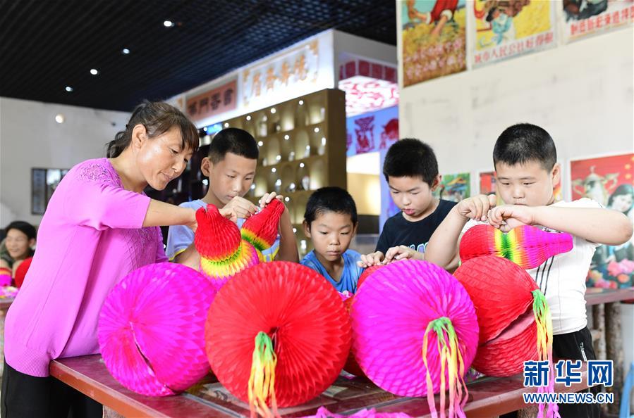 8月9日,民间艺人曙光在大良沟村乡村博物馆向孩子们展示纸艺葫芦制作技艺。 暑假期间,内蒙古赤峰市巴林左旗大良沟村乡村博物馆举办“学习农耕文化 体验传统技艺”主题活动,孩子们通过参加农耕文化讲堂、传统手工技艺课堂、体验曾经的教学环境等活动增长知识,充实暑期生活。 新华社发(王正 摄)