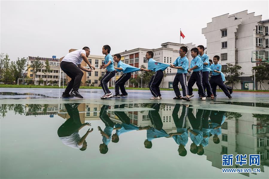 8月9日,在泗洪县魏营镇中心小学操场上,老师带着暑托班的孩子们做游戏。 暑假期间,江苏省泗洪县利用政府补贴和社会资源,为困难家庭和农村留守儿童举办“爱心暑托班”,提供文体娱乐、心理疏导、法治教育、安全自护、素质拓展等活动,帮助孩子们度过一个安全、快乐、有意义的假期。 新华社发(许昌亮 摄)