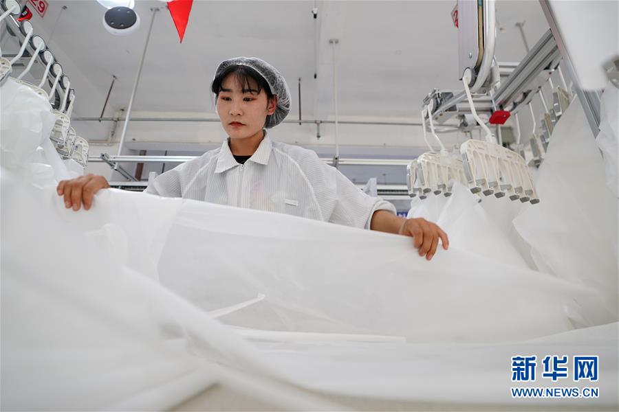 8月9日,甘肃拓奇扶贫车间的员工在服装加工生产线上作业。 甘肃拓奇扶贫车间位于甘肃省临夏回族自治州积石山县,是依托东西部扶贫协作平台引进的服装加工企业。扶贫车间建成投产以来带动就业近300人,其中吸纳建档立卡贫困户就业110人,实现了贫困群众就地就近就业增收的目的,为助推当地脱贫攻坚及县域经济发展发挥了重要作用。 新华社记者 邢广利 摄
