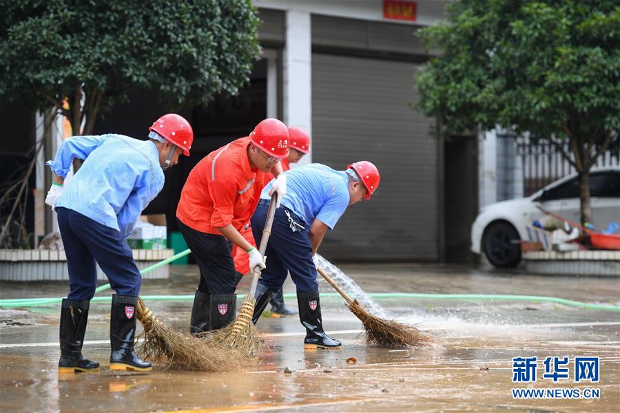 8月10日,在湖南岳阳平江县瓮江镇石坳村,工作人员对道路进行清淤。 8月9日至10日,湖南省岳阳市平江县普降大暴雨,局地特大暴雨,导致24个乡镇不同程度受灾。目前,当地已启动防汛Ⅳ级应急响应,积极开展抢险救灾、灾后清淤等工作,争取把灾情造成的损失降到最低。 新华社记者 陈泽国 摄