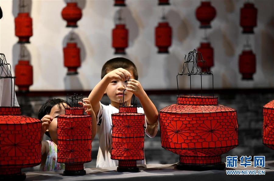 8月10日,在石家庄市桥西区冀台联文化产业园,小朋友在参观传统手工艺灯笼。 暑假期间,河北省石家庄市桥西区面向少年儿童开展“体验非遗魅力”活动。孩子们在冀台联文化产业园开展研学活动,感受射箭、蛋雕、古筝等非遗文化的魅力。 新华社发(许建园 摄)