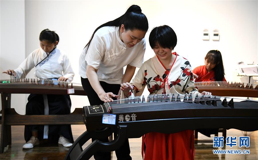 8月10日,专业老师在石家庄市桥西区冀台联文化产业园辅导孩子们学习古筝。 暑假期间,河北省石家庄市桥西区面向少年儿童开展“体验非遗魅力”活动。孩子们在冀台联文化产业园开展研学活动,感受射箭、蛋雕、古筝等非遗文化的魅力。 新华社发(许建园 摄)