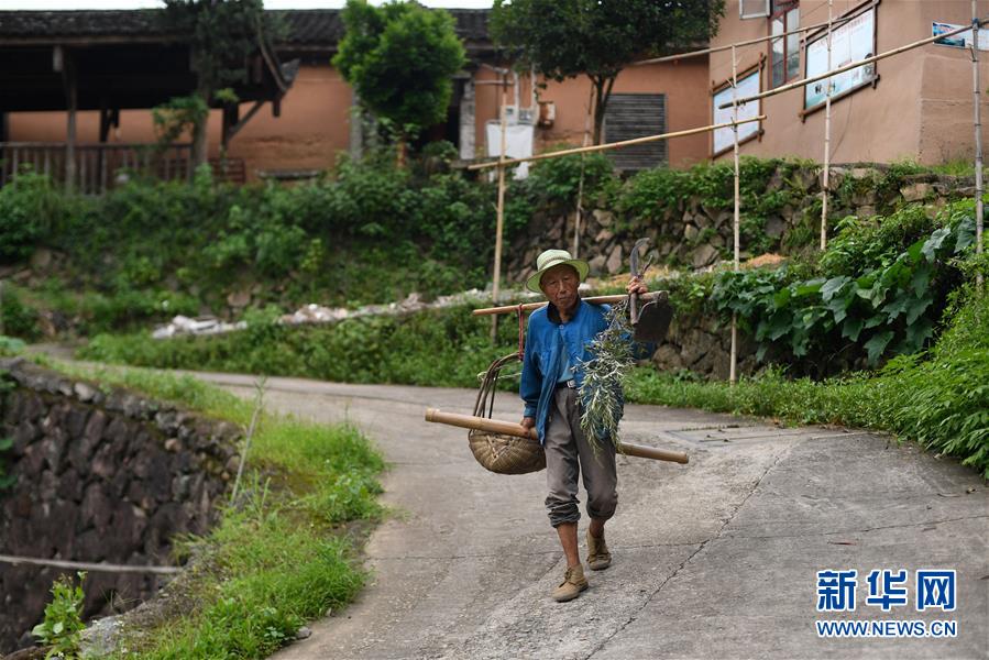 在浙江省丽水市松阳县三都乡杨家堂村,村民在外劳作后回家(7月17日摄)。 新华社记者 黄宗治 摄