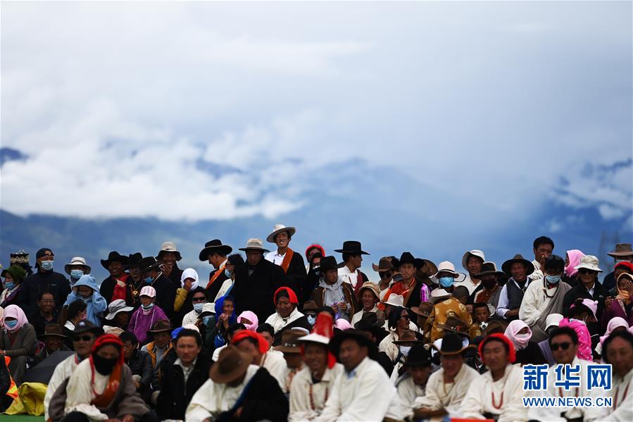 8月10日,牧民在拔河比赛现场观看比赛。新华社记者 普布扎西 摄