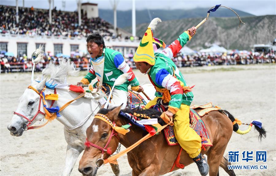 8月10日,骑手驰骋在当雄县赛马场。新华社记者 晋美多吉 摄