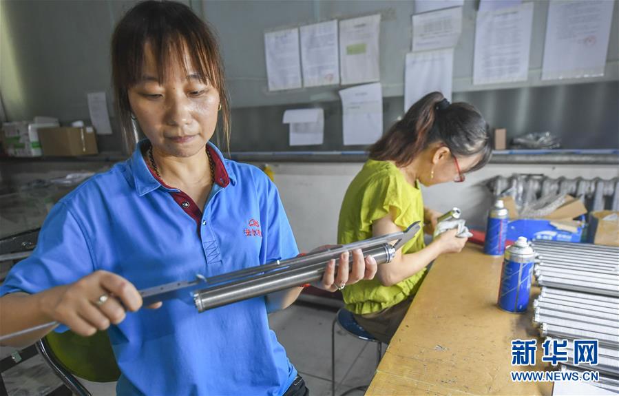 8月11日,河北省安平县前庄村已脱贫的建档立卡贫困户张纳钦(左)在一家丝网企业检测丝网产品。 近年来,河北省安平县将就业扶贫作为脱贫攻坚的重要抓手,通过举办就业扶贫专项招聘会、提供“一对一”免费就业培训服务、鼓励灵活就业等举措,多渠道增加贫困人口就业机会。截至目前,全县已有407名建档立卡脱贫户通过就业脱贫。 新华社记者 李晓果 摄