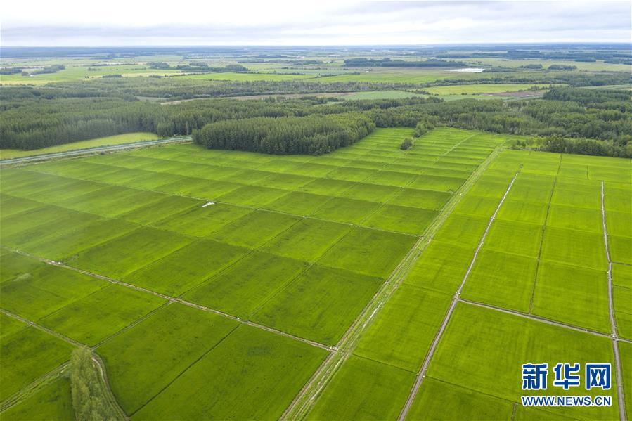 8月11日在抚远市拍摄的稻田(无人机照片)。 时下,“华夏东极”黑龙江省抚远市的水稻长势良好,苍翠的稻田一望无际,犹如绿毯铺在大地上。 新华社记者 谢剑飞 摄