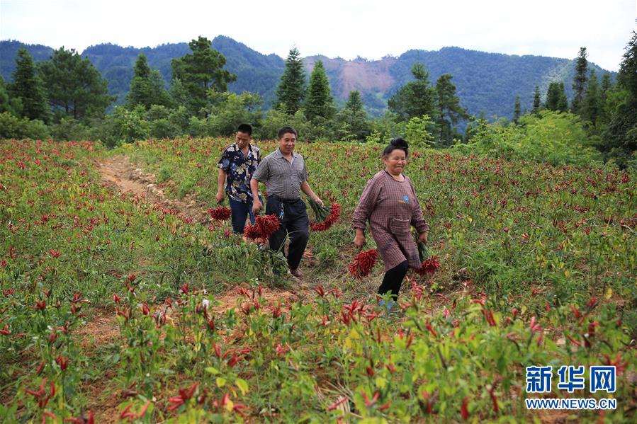 8月12日,在贵州省剑河县久仰镇摆尾村辣椒种植基地,农户在搬运刚采收的辣椒。 近年来,贵州省黔东南苗族侗族自治州剑河县因地制宜,加大农业产业结构调整,扩大辣椒等特色产业种植,采取“公司+种植基地+农户”订单种植模式,帮助当地群众持续增收。 新华社发(杨家孟 摄)