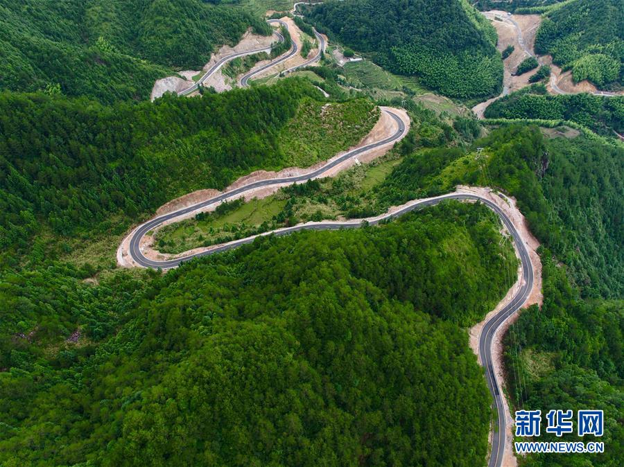 通往陈峭村的旅游公路蜿蜒在群山之中(无人机照片,8月3日摄)。 新华社记者 姜克红 摄