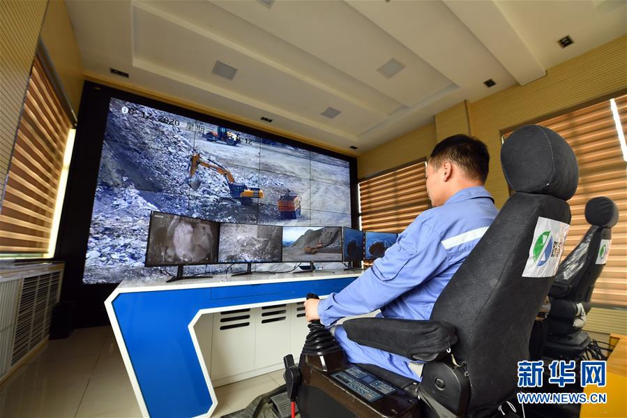 8月12日,工人在洛阳钼业三道庄露天矿智能调度中心远程遥控挖掘机作业。 洛阳栾川钼业集团股份有限公司三道庄露天矿位于河南省栾川县,2019年首次将5G技术应用于实际生产,利用5G网络超高速率、超低时延的特性,实现了钻、铲设备超远程精准控制和无人驾驶纯电动矿用卡车智能编队运行,改善了工人的工作环境,提高了生产效率。 新华社记者 李嘉南 摄