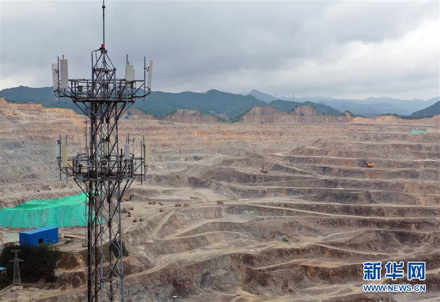 这是8月12日拍摄的洛阳钼业三道庄露天矿智能调度中心上方的5G基站(无人机照片)。 洛阳栾川钼业集团股份有限公司三道庄露天矿位于河南省栾川县,2019年首次将5G技术应用于实际生产,利用5G网络超高速率、超低时延的特性,实现了钻、铲设备超远程精准控制和无人驾驶纯电动矿用卡车智能编队运行,改善了工人的工作环境,提高了生产效率。 新华社记者 李嘉南 摄