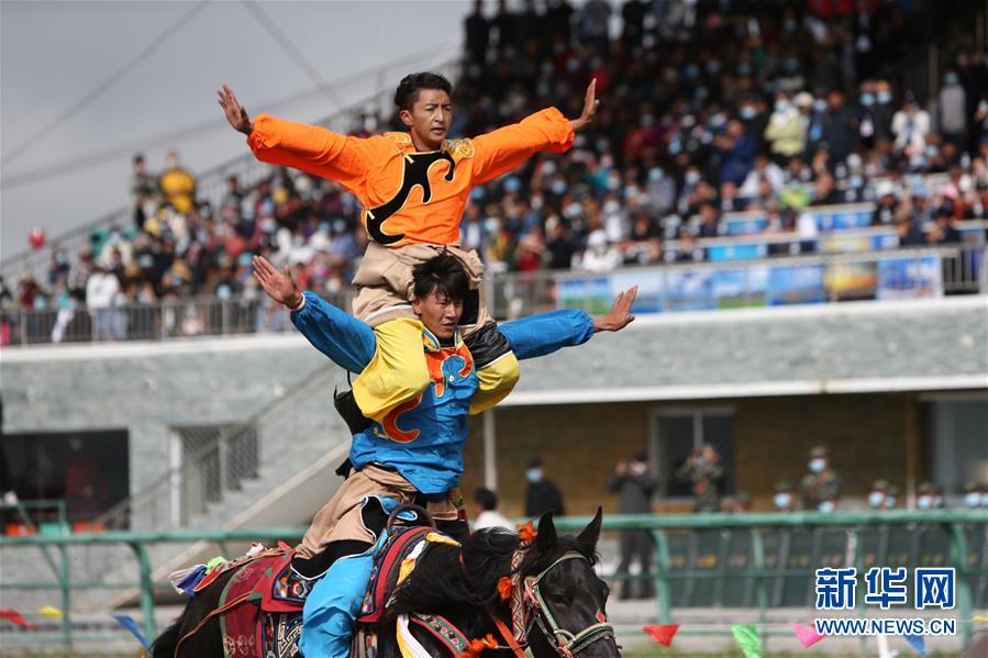8月13日,骑手在赛马节开幕式上表演。新华社记者 耿馨宁 摄