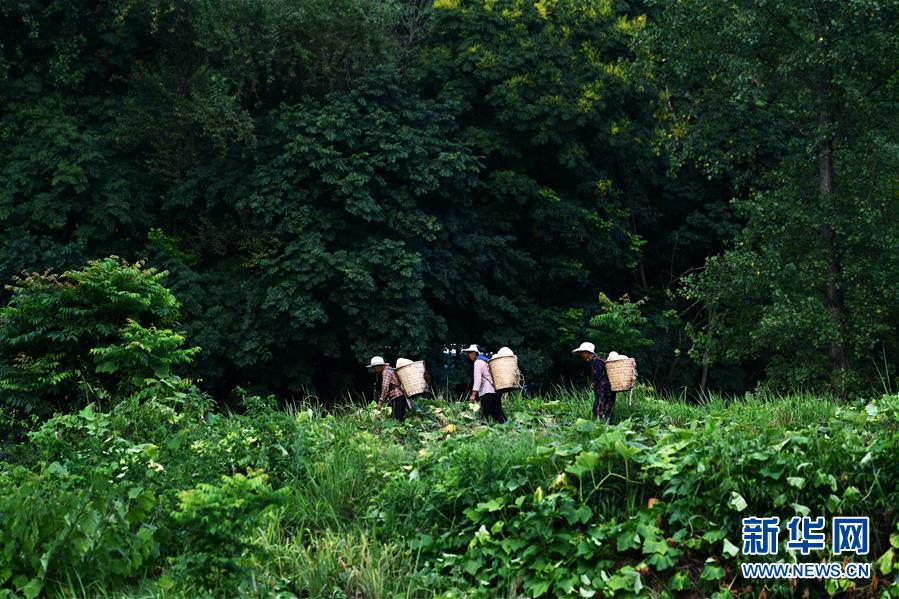8月12日,农民在贵州省思南县许家坝镇双坝坝区搬运南瓜。 近日,贵州省铜仁市思南县许家坝镇双坝坝区种植的南瓜、冬瓜陆续成熟,农民忙着采收、搬运、销售,田间地头一派忙碌的丰收景象。近年来,思南县积极推进19个500亩以上坝区建设,采取“龙头企业+合作社+农户”的发展模式,发展蔬菜、红薯、精品水果、中药材等坝区产业,帮助农民就近就业增收。 新华社记者 杨文斌 摄