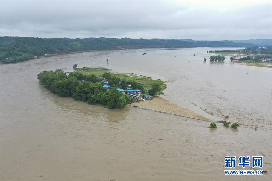 8月13日,在重庆市潼南区玉溪镇,涪江水位明显上涨(无人机照片)。 受上游强降雨影响,嘉陵江近日出现明显涨水过程,“嘉陵江2020年第1号洪水”已在嘉陵江支流涪江形成。重庆市正式启动洪水防御Ⅱ级应急响应。 据初步统计,截至13日16时30分,位于涪江畔的重庆市潼南区,沿涪江7个镇街不同程度受灾,受灾人数8209人,转移人口6658人,农作物受灾面积5579亩。 新华社记者 黄伟 摄