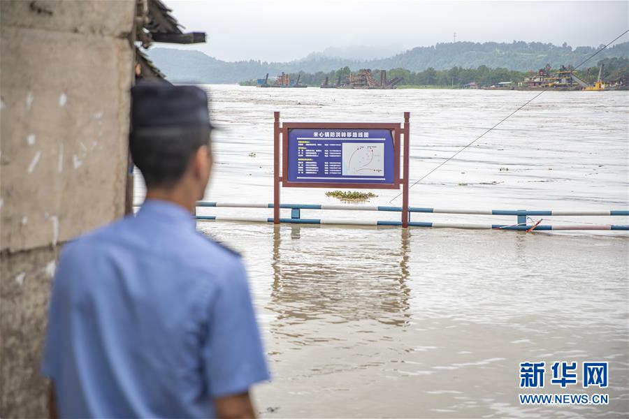 8月13日,在重庆市潼南区米心镇,涪江水位明显上涨,一名工作人员在岸边执勤。 受上游强降雨影响,嘉陵江近日出现明显涨水过程,“嘉陵江2020年第1号洪水”已在嘉陵江支流涪江形成。重庆市正式启动洪水防御Ⅱ级应急响应。 据初步统计,截至13日16时30分,位于涪江畔的重庆市潼南区,沿涪江7个镇街不同程度受灾,受灾人数8209人,转移人口6658人,农作物受灾面积5579亩。 新华社记者 黄伟 摄
