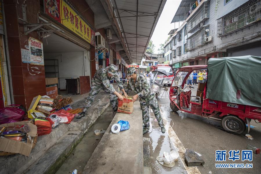 8月13日,在重庆市潼南区玉溪镇,涪江水位持续上涨,应急救援人员帮助老百姓转移物品。 受上游强降雨影响,嘉陵江近日出现明显涨水过程,“嘉陵江2020年第1号洪水”已在嘉陵江支流涪江形成。重庆市正式启动洪水防御Ⅱ级应急响应。 据初步统计,截至13日16时30分,位于涪江畔的重庆市潼南区,沿涪江7个镇街不同程度受灾,受灾人数8209人,转移人口6658人,农作物受灾面积5579亩。 新华社记者 黄伟 摄