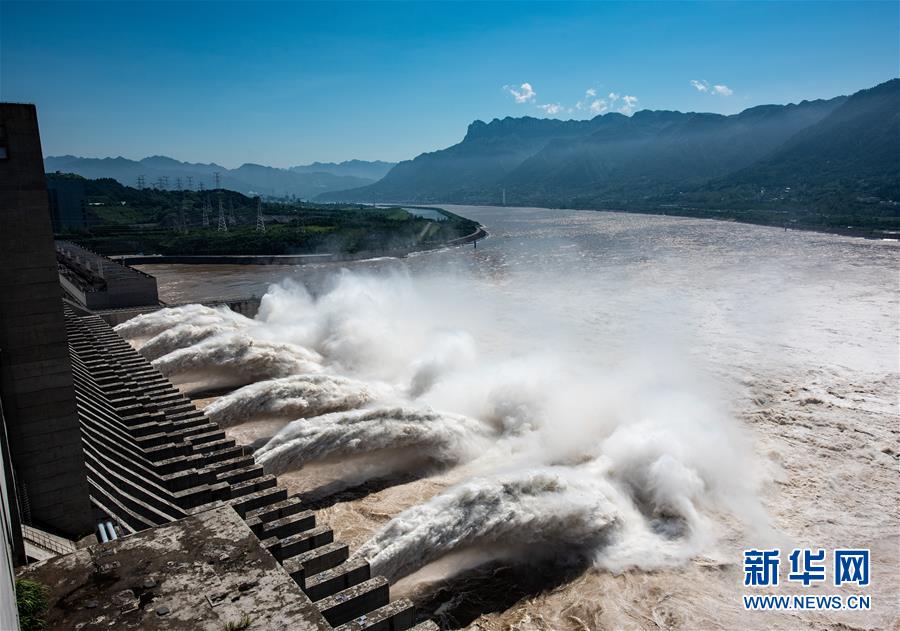 长江三峡枢纽工程开启泄洪深孔泄洪(8月14日摄)。 据水利部8月14日消息,受上游来水影响,长江上游干流寸滩水文站(重庆江北)14日5时流量涨至50900立方米每秒。根据全国主要江河洪水编号规定,此次来水达到洪水编号标准,编号为“长江2020年第4号洪水”。 新华社发(郑家裕 摄)