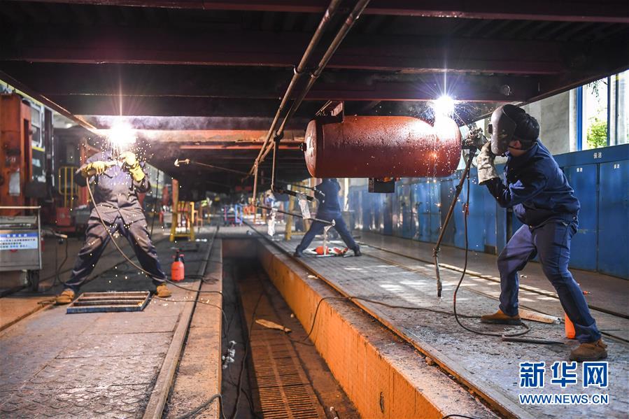 8月14日,在中国铁路南宁局集团有限公司南宁车辆段检修库,电焊工人在作业中。 为保障暑运期间铁路车辆运行安全,中国铁路南宁局集团有限公司南宁车辆段近期对普速客车进行检修。检修车间内的电焊工人犹如一个个“蒙面火枪手”,他们冒着高温,在三伏天里对火车车体外墙板、车底横梁、车底板进行作业。 新华社记者 曹祎铭 摄