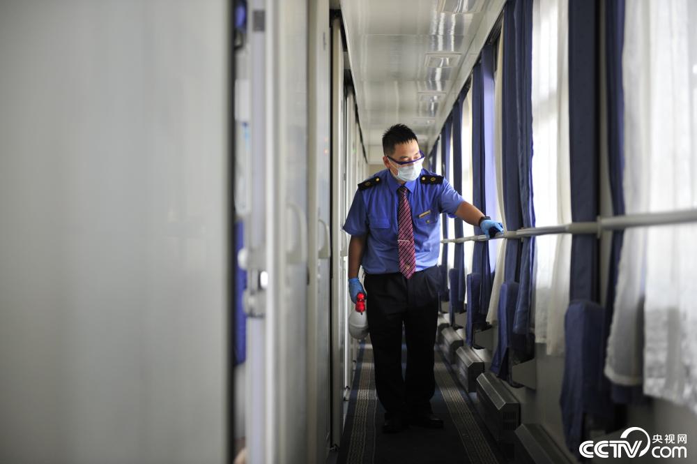 疫情期间,列车乘务员随时要对列车的扶手、水龙头、冲水按钮、垃圾箱盖进行逐一擦拭,每间隔两个小时,还要对列车进行一次消毒,以保障旅客和工作人员的安全。甄鹏说:“春节期间的疫情,大家都觉得距离自己非常遥远,现在疫情就在身边,大家的重视程度也都提高了。守护着乘客的安全,是我们的责任和义务。”(刘泽 摄影报道)