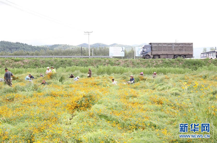 在黑龙江省伊春市南岔县一处药材基地,林宝药业集团的“产业农民”在采摘中草药。 新华社记者 管建涛 摄