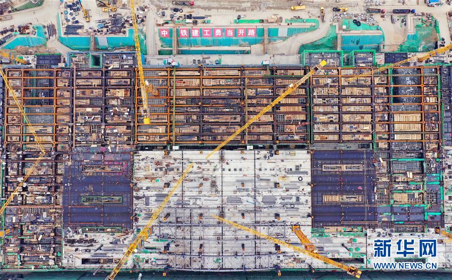 这是3月25日拍摄的京雄城际铁路雄安站施工现场(无人机照片)。 新华社记者 牟宇 摄