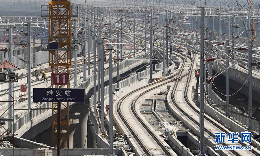 7月24日,工人在京雄城际铁路雄安站施工。 新华社记者 邢广利 摄