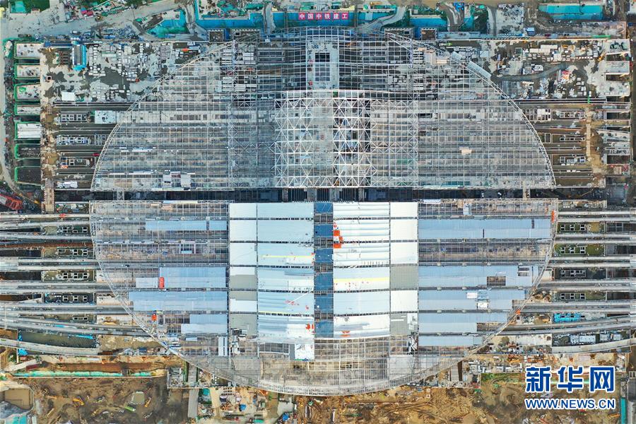 这是8月13日拍摄的京雄城际铁路雄安站建设现场(无人机照片)。 新华社记者 牟宇 摄