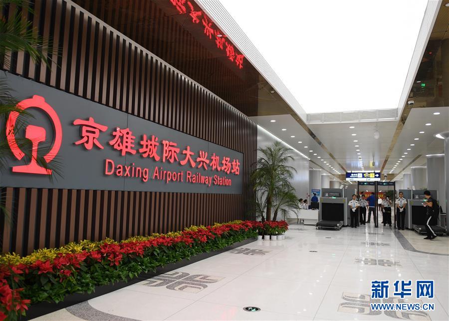 2019年9月26日拍摄的京雄城际大兴机场站大厅。当日,京雄城际铁路北京西至大兴机场段开通运营。新华社记者 张晨霖 摄