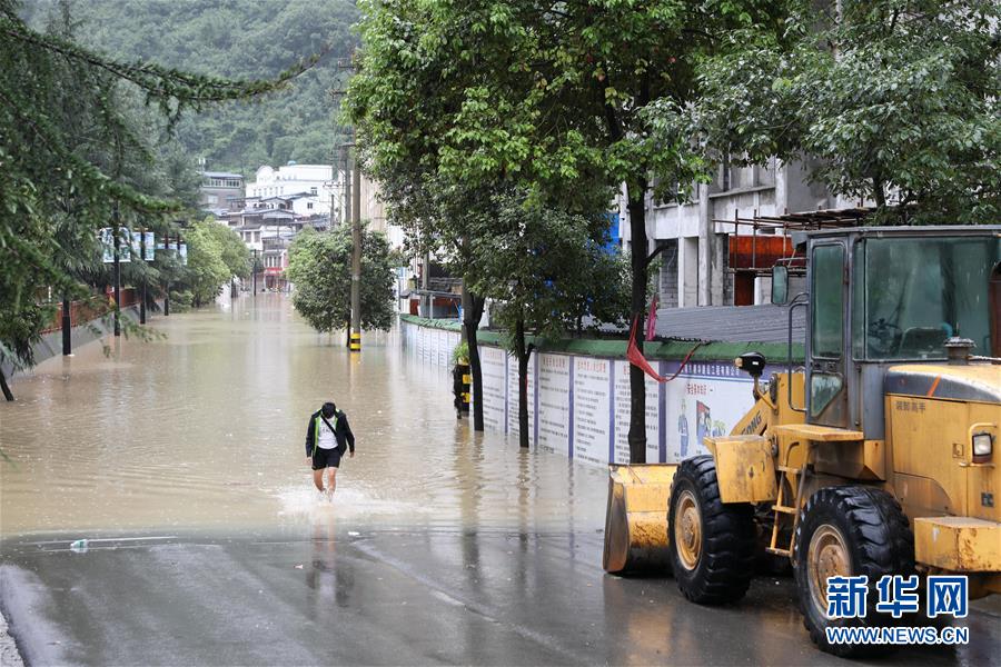 8月17日,甘肃省陇南市文县碧口镇出现内涝。 新华社记者 杜哲宇 摄