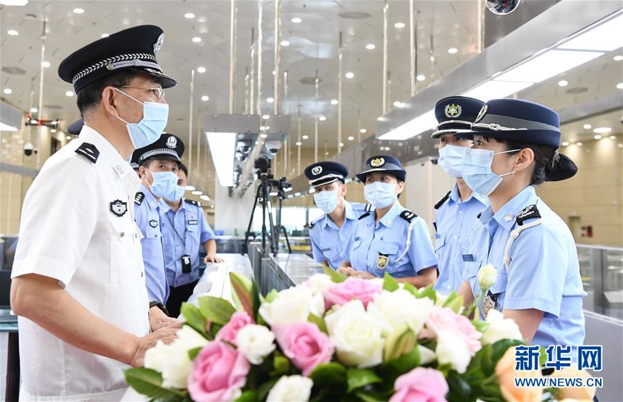 8月17日,珠海出入境边防检查总站人员(左)和澳门治安警察局代表在横琴口岸珠澳分界线上洽谈。 当日,珠海出入境边防检查总站与澳门特区政府治安警察局在横琴口岸新旅检区域联合开展全真实环境下的勤务组织和模拟通关实战演练,全力保障8月18日横琴口岸新旅检区域顺利开通、顺畅运行。 新华社记者 邓华 摄