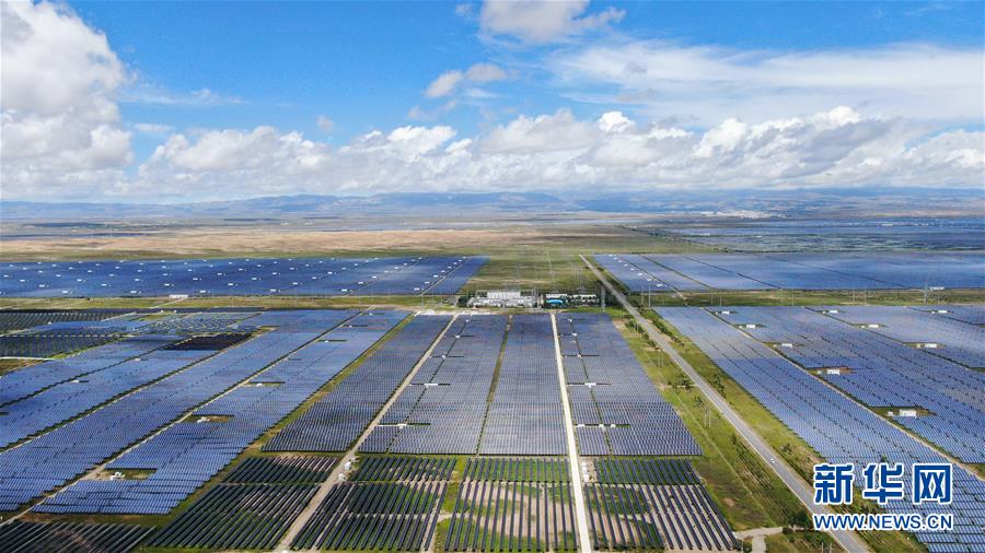 这是8月17日在青海省海南藏族自治州共和县塔拉滩绿色产业发展园区拍摄的光伏电站(无人机照片)。