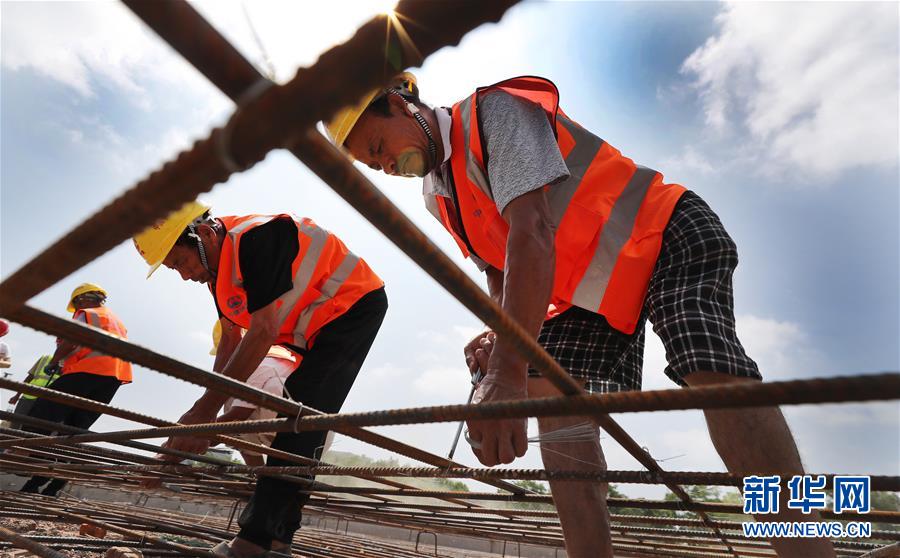 8月18日,工人在张江站工地对路基钢筋进行加固。 新华社记者 方喆 摄