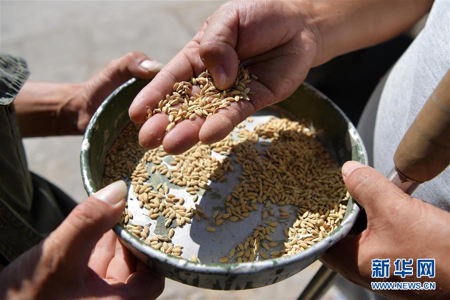 8月18日,江西省南昌县广福粮食管理所广福粮站的工作人员在运粮的货车上抽样准备进行检测。 新华社记者 彭昭之 摄
