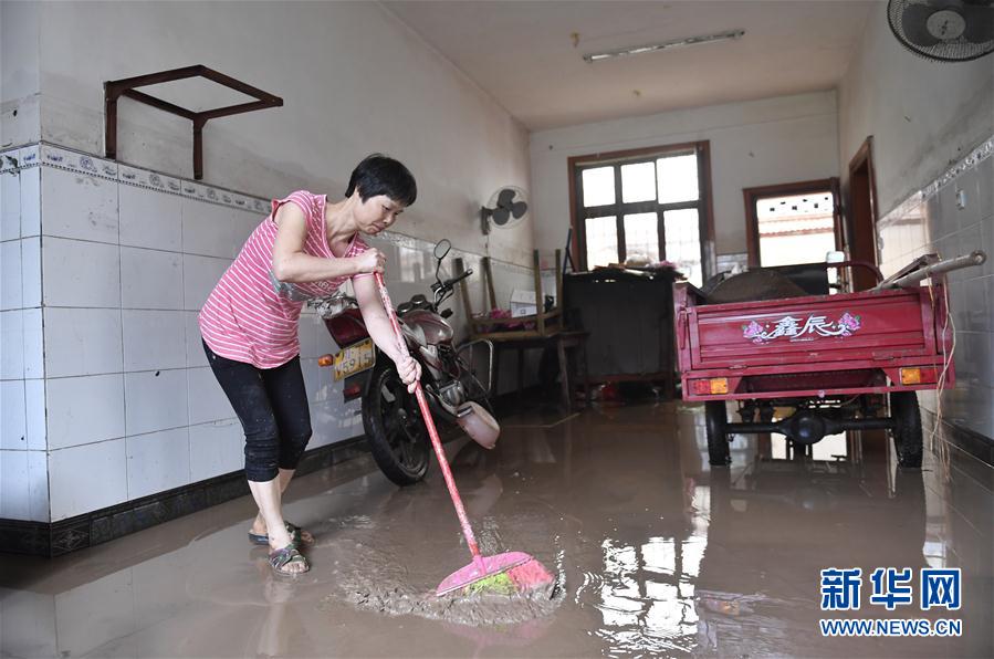 8月18日,洪水过后,雅安市雨城区草坝镇居民在清理家里积水。 当日5时,四川启动I级防汛应急响应,这是有记录以来,四川首次启动该响应。预计整个青衣江流域洪水将全面超过保证水位,大渡河下游、岷江下游也将出现全面超警超保洪水,防汛形势十分严峻。 新华社记者 刘坤 摄