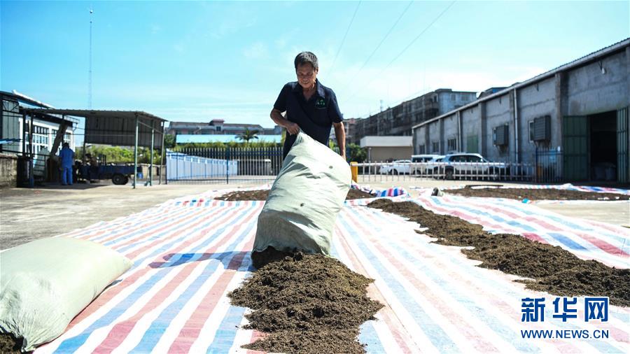 8月18日,在广西柳州市融安县,广西仙草堂制药有限责任公司员工在晾晒收购的青蒿叶。 时下,广西柳州市融安县3万亩青蒿进入收获季。当地群众抓紧时间抢收青蒿,生产厂家开足马力提取青蒿素,供应国内外市场。 新华社记者 张爱林 摄