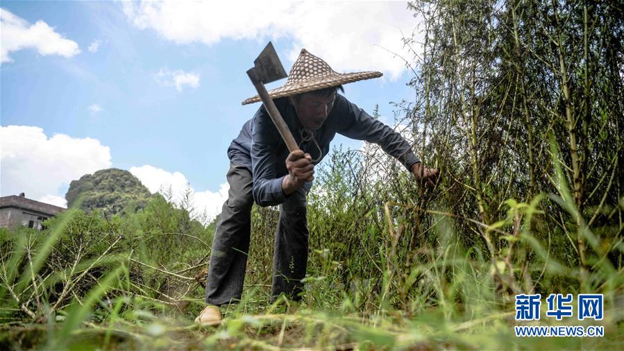 8月18日,广西柳州市融安县泗顶镇马田村庙鸭屯村民覃福初在收割青蒿。 时下,广西柳州市融安县3万亩青蒿进入收获季。当地群众抓紧时间抢收青蒿,生产厂家开足马力提取青蒿素,供应国内外市场。 新华社记者 张爱林 摄