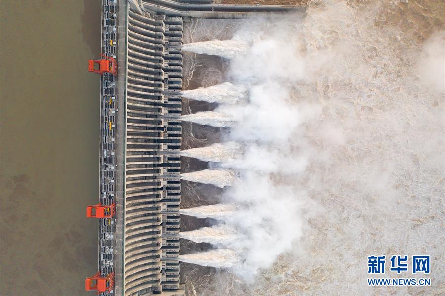 8月18日拍摄的长江三峡枢纽工程开启泄洪深孔泄洪的情景(无人机照片)。 水利部长江水利委员会水文局当日11时升级发布长江上游支流岷江洪水红色预警,继续发布长江上游干流宜宾至寸滩江段、沱江、涪江洪水橙色预警,嘉陵江、三峡库区洪水黄色预警,长江中下游干流城陵矶江段、九江至南京江段、鄱阳湖区、洞庭湖区洪水蓝色预警。 新华社发(郑家裕 摄)