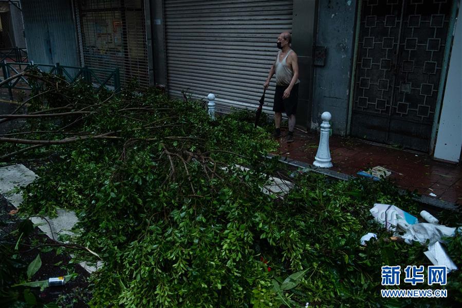 8月19日,一名老人经过大树倒塌的澳门下环街。 台风“海高斯”袭击珠海、澳门沿海地区,澳门特区政府地球物理暨气象局8月19日5时宣布改发十号风球,5时30分发出风暴潮红色预警。 新华社记者 张金加 摄