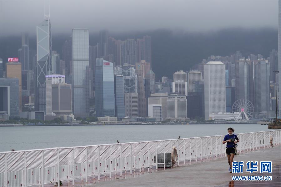 8月19日,市民在香港尖沙咀海滨走廊锻炼身体。 8月19日凌晨开始,台风“海高斯”正面吹袭香港,香港天文台当日凌晨1时30分发出俗称“九号风球”的九号烈风或暴风风力增强信号。截至上午11时,特区政府共收到53个塌树报告,共有7位市民在风暴期间受伤。 新华社记者 王申 摄