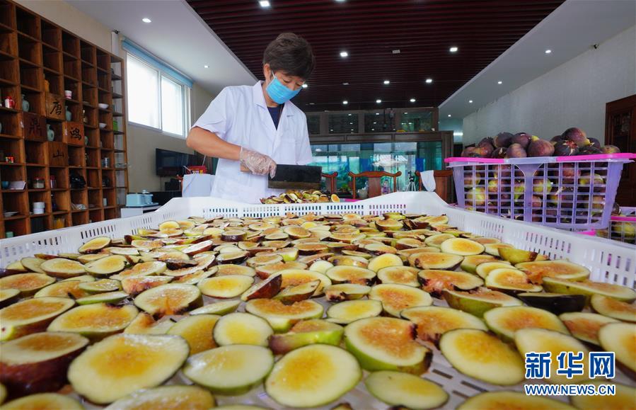 8月19日,在唐山市开平区洼里镇西尚庄村德汇无花果种植培育基地,工人将无花果切片,加工无花果干。 近年来,河北省唐山市开平区积极引导当地农民采取“公司+集体+农户”的经营模式发展无花果种植,丰富了当地农产品种类,拓宽了农民增收渠道。 新华社记者 杨世尧 摄